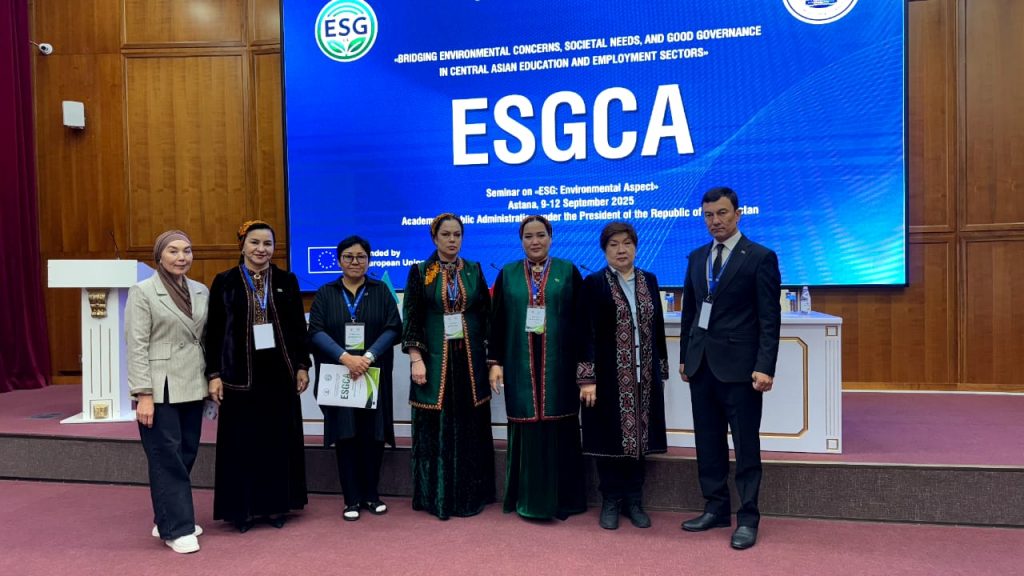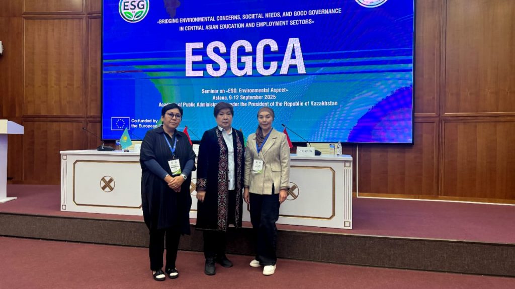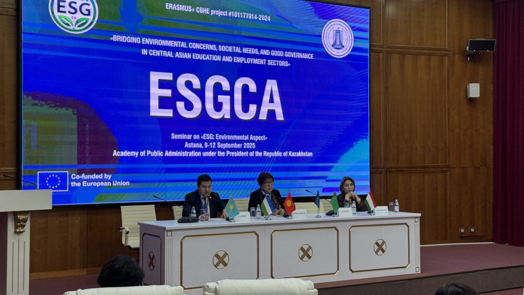 С 9 по 12 сентября 2025 года в Академии государственного управления при Президенте Республики Казахстан (APA KZ) проходит семинар в рамках проекта ESGCA «Соединение экологических проблем, социальных потребностей и управления в секторах образования и занятости в Центральной Азии» программы ERASMUS+ Европейского Союза, объединяющий университеты, представителей бизнеса и государственных структур из Центральной Азии и стран ЕС.