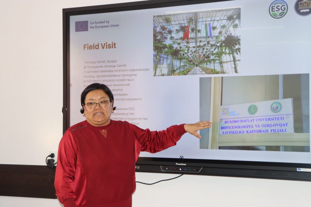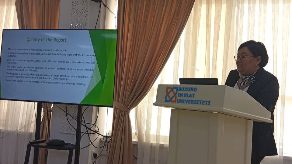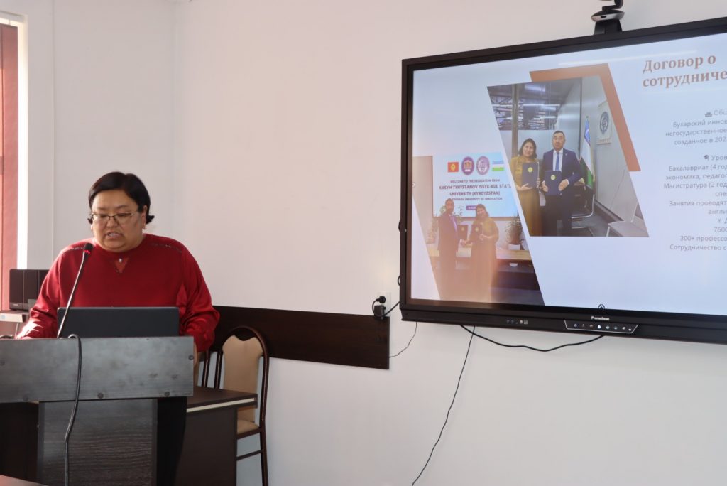 13 октября 2025 года на собрании руководителей структурных подразделений Иссык-Кульского государственного университета имени К. Тыныстанова члены рабочей команды проекта ESGCA презентовали отчет о рабочей поездке в Бухарский государственный университет (Узбекистан).